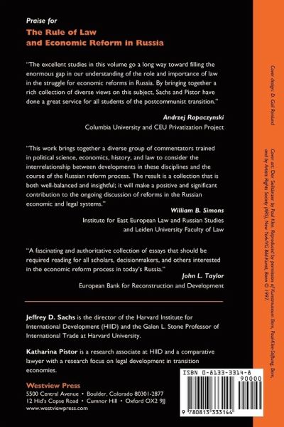 What impact has Russia's chosen path of reform had on the development of law after the collapse of the communist regime? This collection of essays examines how Russia's distinctive traditions of law?and lawlessness?are shaping the current struggle for economic reform in the country. Nine renowned scholars, chosen from specialties in history, political science, law, and economics, expertly address the question.By drawing on the experiences of other transition countries and of developed market economies within the context of Russian history, these essays put Russia's transition since 1991 into clearer perspective. This book compares Russia's legal tradition with the Western legal tradition; distinguishes Russia's progress in commercial law reform from that of other transition countries; and explores the politics of government as well as inside enterprises surrounding corporate law reform in prerevolutionary Russia, during perestroika, and during Russia's ambitious mass privatization program.Using comparative data, the authors assess the impact on economic reform programs of highly centralized presidential constitutions versus parliamentary constitutions. The enormous challenge posed by mounting crime and corruption is analyzed, and the economic causes and possible remedies are discussed. As statutory law reform is only one element in legal reform, the book also explores the functioning of legal institutions, including the police, other public security forces, and private dispute settlement institutions.Jeffrey Sachs and Katharina Pistor provide a wide range of factual evidence and interpretations, which will greatly enhance the debate about Russia's path toward economic and legal reform.