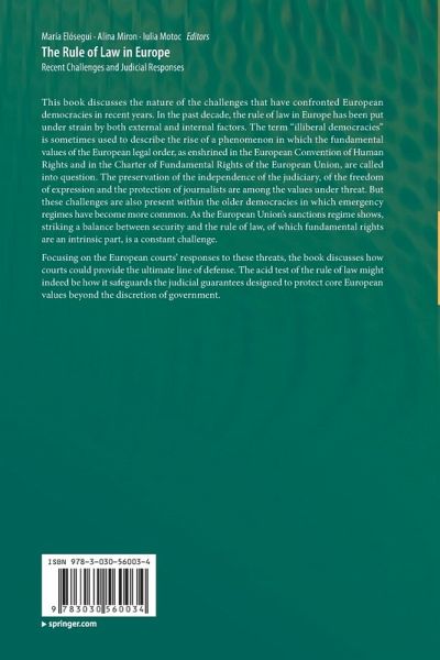 This book discusses the nature of the challenges that have confronted European democracies in recent years. In the past decade, the rule of law in Europe has been put under strain by both external and internal factors. The term "illiberal democracies" is sometimes used to describe the rise of a phenomenon in which the fundamental values of the European legal order, as enshrined in the European Convention of Human Rights and in the Charter of Fundamental Rights of the European Union, are called into question. The preservation of the independence of the judiciary, of the freedom of expression and the protection of journalists are among the values under threat. But these challenges are also present within the older democracies in which emergency regimes have become more common. As the European Union's sanctions regime shows, striking a balance between security and the rule of law, of which fundamental rights are an intrinsic part, is a constant challenge. Focusing onthe European courts' responses to these threats, the book discusses how courts could provide the ultimate line of defense. The acid test of the rule of law might indeed be how it safeguards the judicial guarantees designed to protect core European values beyond the discretion of government.