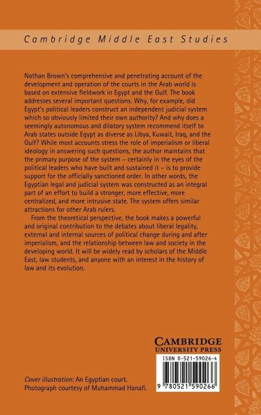 Nathan Brown's penetrating account of the development and operation of the courts in the Arab world is based on fieldwork in Egypt and the Gulf. The book addresses several important questions. Why, for example, did Egypt's political leaders construct an independent judicial system that limited their own authority? And why does such a system appeal to Arab rulers outside Egypt? While most accounts stress the role of imperialism or liberal ideology, the author maintains that the primary purpose of the system is to provide support for the officially sanctioned order. The model offers similar attractions for other Arab rulers. From the theoretical perspective, the book will contribute to the debates about liberal legality, political change and the relationship between law and society in the developing world. It will be read by scholars of the Middle East, law students and those interested in the history of law and its evolution.