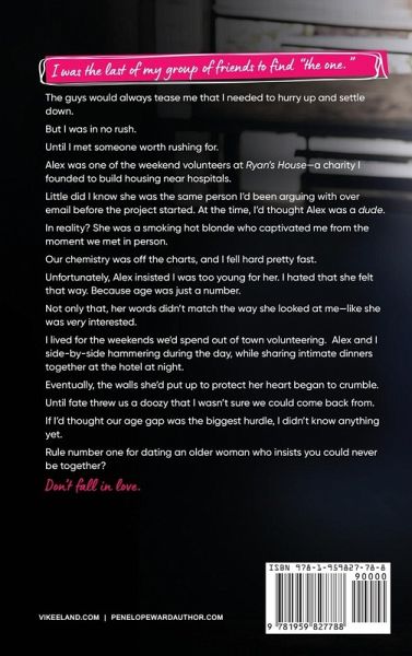 From New York Times bestselling authors Vi Keeland and Penelope Ward comes a new standalone romance. I was the last of my group of friends to find "the one." The guys would always tease me that I needed to hurry up and settle down. But I was in no rush. Until I met someone worth rushing for. Alex was one of the weekend volunteers at Ryan's House-a charity I founded to build housing near hospitals. Little did I know she was the same person I'd been arguing with over email before the project started. At the time, I'd thought Alex was a dude. In reality? She was a smoking hot blonde who captivated me from the moment we met in person. Our chemistry was off the charts, and I fell hard pretty fast. Unfortunately, Alex insisted I was too young for her. I hated that she felt that way. Because age was just a number. Not only that, her words didn't match the way she looked at me-like she was very interested. I lived for the weekends we'd spend out of town volunteering. Alex and I side-by-side hammering during the day, while sharing intimate dinners together at the hotel at night. Eventually, the walls she'd put up to protect her heart began to crumble. Until fate threw us a doozy that I wasn't sure we could come back from. If I'd thought our age gap was the biggest hurdle, I didn't know anything yet. Rule number one for dating an older woman who insists you could never be together? Don't fall in love.