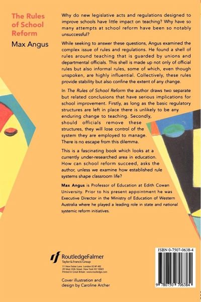 Why do new legislative acts and regulations designed to improve schools have little impact on teaching? Why have so many attempts at school reform been so notably unsuccessful?; While seeking to answer these questions, Angus examined the complex issue of rules and regulations. He found a shell of rules around teaching that is guarded by unions and departmental officials. This shell is made up not only of official rules but also informal rules, some of which, even though unspoken, are highly influential. Collectively, these rules provide stability but also confine the extent of any change.; In "The Rules of School Reform" the author draws two separate but related conclusions that have serious implications for school improvement. Firstly, as long as the basic regulatory structures are left in place there is unlikely to be any enduring change to teaching. Secondly, should officials remove these structures, they will lose control of the system they are employed to manage. There is no escape from this dilemma. The author asks how can school reform succeed, unless we examine how established rule systems shape classroom life?