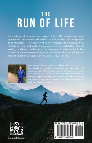 What do you desperately want to achieve in running, in sport, in life? How do you identify the summit that your passion is driving you towards? How do you harness that passion's remarkable power? How do you plan your path towards that towering achievement? Why should motivation not be a problem? How do you overcome setbacks? How can YOU reach your mountaintop? International ultrarunner and coach Steve Till analyses his own experiences, inspirations and beliefs - as well as those of sportspeople of all standards - to trace how they have shaped and empowered his remarkably long and wide-ranging career, in an exploration of goal-setting, motivation, resilience and achievement, to create a book that is a must-read for runners at any level, and indeed all of us who try and make the best of our abilities in any walk - or run - of life. Steve has competed in 100km and 24-hour events for his country, won medals in national championships, run more than 100 marathons, over 500 parkruns, and is a Centurion, having race walked 100 miles in less than 24 hours. His hard-won insights and moving examples can help you to harness your passion, identify your mountaintop, plan your ascent, overcome any setbacks and finally reach your personal summit. Primarily about running but directly applicable to any challenge, The Run of Life explores what it takes to identify the right goal - the one that excites your passion - to plan for its achievement, to overcome any setbacks and to prepare yourself for the ultimate test. It does this by examining Steve's own journey from coming last in university cross country races to running for Great Britain and Northern Ireland in ultrarunning events, and the experiences of dozens of other runners, sportspeople and those who strive in any arena. There are lessons here, but it's not preaching. It is more about ideas, interest and inspiration.