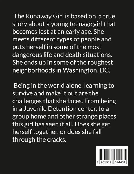 The Runaway Girl is based on a true story about a young teenage girl that becomes lost at an early age. She meets different types of people and puts herself in some of the most dangerous life and death situations. She ends up in some of the roughest neighborhoods in Washington, DC. Being in the world alone, learning to survive and make it out are the challenges that she faces. From being in a Juvenile Detention center, to a group home and other strange places this girl has seen it all. Does she get herself together, or does she fall through the cracks.