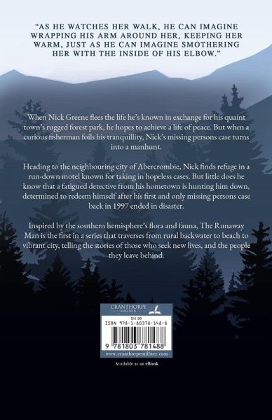 Nick Greene flees the life he's known in exchange for peace in his quaint town's rugged forest park, but when a curious fisherman foils his tranquillity, Nick's missing persons case turns into a manhunt. Heading to the neighbouring city of Abercrombie, Nick finds refuge in a run-down motel known for taking in hopeless cases. He forms a friendship with his neighbour, Marina, but little does Nick know, a fatigued detective from his hometown is hunting him down, determined to redeem himself after his first and only missing persons case back in 1997 ended in disaster. Inspired by the Southern Hemisphere's flora and fauna, The Runaway Man is the first in a series that traverses a rural backwater, to beachland, to a vibrant city, and tells the stories of those who seek new lives, and those left behind in the old ones.