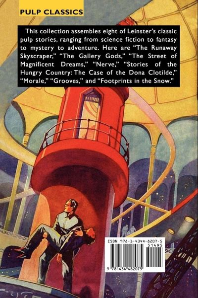 This collection assembles eight of Leinster's classic pulp stories, ranging from science fiction to fantasy to mystery to adventure. Here are "The Runaway Skyscraper," "The Gallery Gods," "The Street of Magnificent Dreams," "Nerve," "Stories of the Hungry Country: The Case of the Dona Clotilde," "Morale," "Grooves," and "Footprints in the Snow."