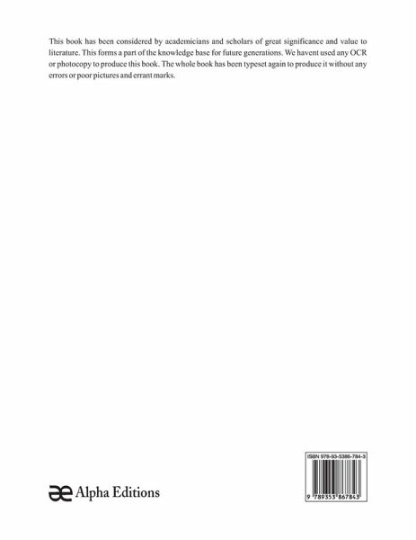 This book has been considered by academicians and scholars of great significance and value to literature. This forms a part of the knowledge base for future generations. So that the book is never forgotten we have represented this book in a print format as the same form as it was originally first published. Hence any marks or annotations seen are left intentionally to preserve its true nature.