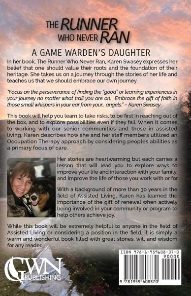In her workbook reflections edition, The Runner Who Never Ran, Karen Swasey expresses her belief that one should value their roots and the foundation of their heritage. She takes us on a journey through the stories of her life and teaches us that we should embrace our own journey.. "Focus on the perseverance of finding the "good" or learning experiences in your journey no matter what trail you are on. Embrace the gift of faith in those small whispers in your ear from your... angels." - Karen Swasey This book will help you learn to take risks, to be first in reaching out of the box, and to explore possibilities even if they fail. When it comes to working with our senior communities and those in assisted living, Karen describes how she and her staff members utilized an Occupation Therapy approach by considering peoples abilities as a primary focus of care. Her stories are heartwarming but each carries a lesson that will lead you to explore ways to improve your life and interaction with your family, and improve the life of those you work with or for. With a background of more than 30 years in the field of Assisted Living, Karen has learned the importance of the gift of renewal when actively being involved in your community or program to help others achieve joy. While this workbook will be extremely helpful to anyone in the field of Assisted Living or considering a position in the field, it is simply a warm and wonderful book filled with great stories, wit, and wisdom for any reader.