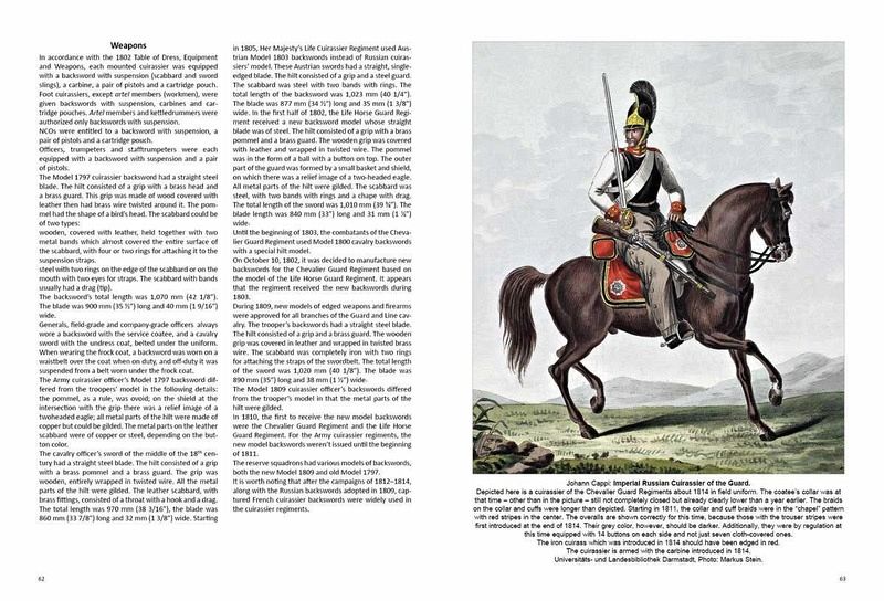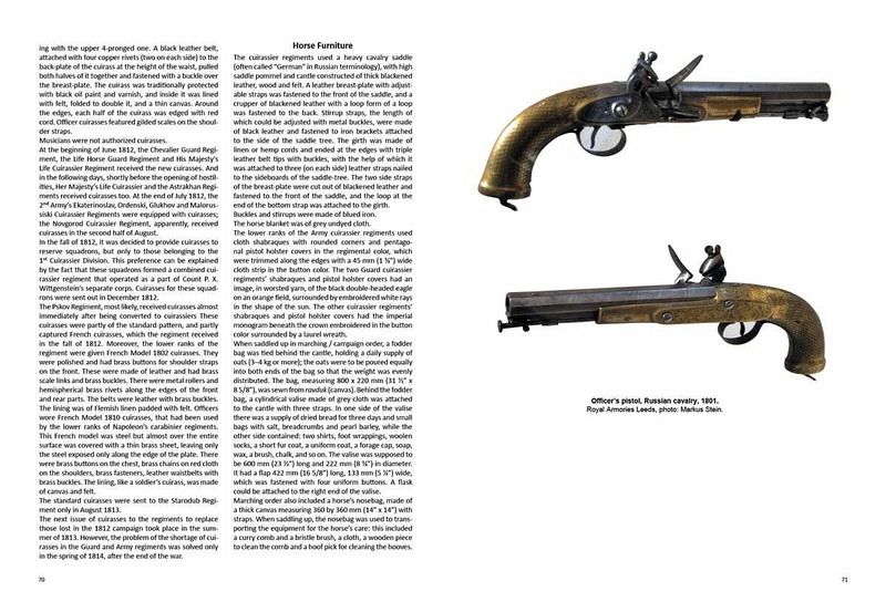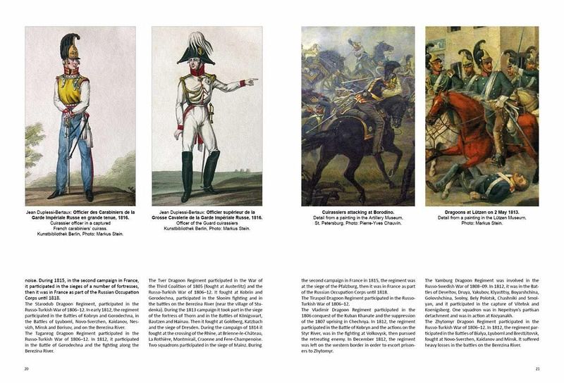 In this volume, the author provides a detailed picture of the Russian cuirassiers and dragoons at the beginning of the 19th century. He has evaluated numerous sources and enriches the publications available on the subject - which are not as extensive as on other armies - with a thorough presentation. This is likely to find a large readership, as it covers the Napoleonic Wars, in which Russia played a not insignificant role. As is well known, many interested experts and laypeople are still intensively involved with this period. This very comprehensive and detailed publication on the cuirassiers and dragoons describes how their organization and structure developed, how the regiments were manned, in which battles and campaigns they participated, what their armament and equipment looked like, and last but not least how their uniforms looked. The latter is dealt with extensively, with the development described in detail. The reader must always keep in mind that in that era, years could pass between the issuance of a decree and its full implementation. This applied to the uniforms as well as the weaponry and equipment. In the regiments of the Guard, on which the tsar kept a close eye, these changes naturally happened more quickly than was the case for Army regiments in the gigantic Russian empire's distant provinces. From this perspective, the descriptions of the Guard regiments address both their special characteristics and their elevated status. An interesting aspect of the book is the description of not just the combatants but also the non-combatants within these regiments, a subject usually not covered at all in comparable publications. Here, not only are their uniforms, weapons and equipment described but also their distinct roles. Additionally, the book provides detailed information on the Gendarmerie Regiment created near the end of the Napoleonic Wars. This work can provide new insights to both military scientists and military historians but also historical filmmakers, military miniature collectors and interested laypeople. This book's clear structure makes it easy to use as a reference work. The appended lexicon of Russian military terms and their English translation enable a clear conceptual classification in both languages. This volume provides the most thorough work available on the Russian cuirassier and dragoon regiments during the Napoleonic Wars. Based on the Russian author's highly detailed work, it addresses the organization, campaigns and battles, uniforms, weapons, personal and unit equipment, mounts, unit awards and flags, with their development during the period. Not only does this edition provide excellent graphics of uniforms but also high-quality photos of rare museum pieces, and contemporary depictions of the cuirassiers and dragoons of both the Guard and Army regiments. It is an indispensable work for anyone with a serious interest in the Russian Army during the Napoleonic Wars.