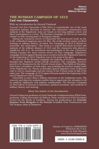 Among the enormous oeuvre of Clausewitz the best-known work, by far, is the unfinished magnum opus On War. His works include many excellent writings on military history, of which The Campaign of 1812 in Russia is, assuredly, the masterpiece. This book is a superb first-hand account and analysis of the military disaster of 1812 and the characters who played a significant role in it. An eyewitness and participant in the war, Clausewitz' writing remains the most serious source on that campaign. Napoleon's campaign of 1812 against Russia was a crucial event in the Napoleonic history. At the beginning of 1812, Napoleon was at the peak of his glory. On the eve of the Russian campaign the majority of European diplomats thought that Napoleon would emerge victorious. The campaign, however, proved to be disastrous for the French Grand Arme. The Battle of Borodino, with heavy causalities on both sides, was probably the hardest fought battle of the Napoleonic era. Victory at Borodino gained Napoleon entry to Moscow only to end in catastrophe and the retreat of the French army in fall of the same year. The campaign of 1812 against Russia marked the beginning of the end of Napoleon's rule in Europe.Clausewitz is more than a military historian in the traditional sense. His concrete and objective analysis enables him to appreciate the situation in all its political, diplomatic and military ramifications. The Russian Campaign of 1812 will be of interest to historians, political scientists, and students of military history and strategy.