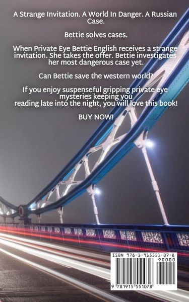 A Strange Invitation. A World In Danger. A Russian Case. Bettie solves cases. When Private Eye Bettie English receives a strange invitation. She takes the offer. Bettie investigates her most dangerous case yet. Can Bettie save the western world? If you enjoy suspenseful gripping private eye mysteries keeping you reading late into the night, you will love this book! BUY NOW!¿