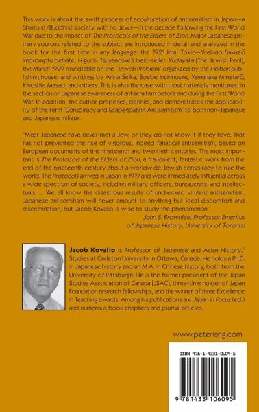 «Sharply focused and highly readable, Jacob Kovalio's study illustrates the appearance of antisemitism in Japan, a society without Jews. The author's trenchant analysis demonstrates how the PROTOCOLS of the ELDERS of ZION, a document fabricated at the turn of the twentieth century in tsarist Russia by antisemitic regime loyalists, inflamed Judeophobia throughout Christendom, and even within Japan sparked an anxious concern that a two-millennia-long conspiracy by Jews to seize control of the world was on the verge of realization. Kovalio's carefully crafted account shows that significant segments of Japan's intellectual, political and military elites took the 'Jewish Peril' portended by the PROTOCOLS very seriously, despite overwhelming evidence that the document was spurious. The author notes insightfully that Japan today still reflects the impact of the PROTOCOLS legacy, in mass-market antisemitic diatribes against the evils and dangers of Jewish 'control' of the world's financial institutions, as well, paradoxically, as in ostensibly benign and complimentary over-estimations of Jewish intelligence, competence and courage. This work provides compelling reading for those with world-historical interests in the globalization of ideas, and offers fascinating cross-cultural perspectives on what Leon Pinsker once termed mankind's apparently inescapable forays in to 'demonopathy', the most significant manifestation of which in recent centuries has been Judeophobia.» (Gordon Berger, Professor Emeritus of Japanese History, UCLA)