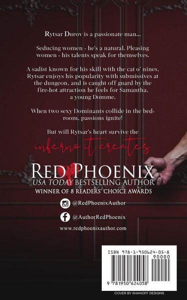 Rytsar Durov is a passionate man... Seducing women - he's a natural. Pleasing women - his talents speak for themselves. A sadist known for his talent with the cat o' nines, Rytsar enjoys his popularity with submissives at the dungeon, and is caught off guard by the fire-hot attraction he feels for Samantha, a young Domme. He knows better than to test those waters, but damn... he just can't resist her. When two sexy Dominants collide in the bedroom, passions ignite! But will Rytsar's heart survive the inferno it creates?