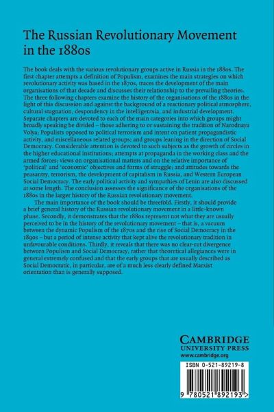 The book deals with the various revolutionary groups active in Russia in the 1880s. The early political activity and sympathies of Lenin are also discussed at some length. The conclusion assesses the significance of the organisations of the 1880s in the larger history of the Russian revolutionary movement.