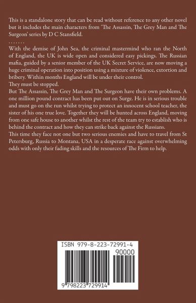 This is a standalone story that can be read without reference to any other novel but it includes the main characters from 'The Assassin, The Grey Man and The Surgeon' series by D C Stansfield. . . . . . . . With the demise of John Sea, the criminal mastermind who ran the North of England, the UK is wide open and considered easy pickings. The Russian mafia, guided by a senior member of the UK Secret Service, are now moving a huge criminal operation into position using a mixture of violence, extortion and bribery. Within months England will be under their control. They must be stopped. But The Assassin, The Grey Man and The Surgeon have their own problems. A one million pound contract has been put out on Surge. He is in serious trouble and must go on the run whilst trying to protect an innocent school teacher, the sister of his one true love. Together they will be hunted across England, moving from one safe house to another whilst the rest of the team try to establish who is behind the contract and how they can strike back against the Russians. This time they face not one but two serious enemies and have to travel from St Petersburg, Russia to Montana, USA in a desperate race against overwhelming odds with only their fading skills and the resources of The Firm to help.