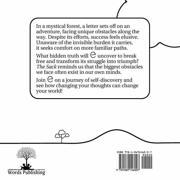 Embark on a journey of self-discovery with The Sack, the inspiring sequel to Lora Rozler's beloved and acclaimed book Words. This time, we join 'e,' our familar hero, as it embarks on an enchanted forest path filled with twists, turns, and unexpected obstacles. Burdened by an invisible weight, 'e' feels compelled to retreat to the comfort of well-known paths, only to find that true growth comes not from avoiding the difficult trails but from embracing them. At each crossroad, 'e' faces moments of doubt, stumbles on steep hills, and encounters challenges that seem insurmountable. But when 'e' finally sets down its sack of self-doubt, it experiences a profound transformation. Suddenly, the path forward shines with possibility, and 'e' realizes the power of thoughts-the ones that hold us back and the ones that set us free. The Sack dives deeply into the quiet world of self-talk and inner beliefs, highlighting how our thoughts shape our experiences. Through gentle storytelling and vibrant imagery, this heartwarming tale encourages readers to pause, reflect, and recognize the hidden strength within themselves. As 'e' learns to let go of negative thoughts, it discovers the courage to keep climbing and the wisdom to help others carry their own unseen burdens. Ideal for readers ages 6-12, The Sack is perfect for bedtime reading or as a thoughtful addition to classroom discussions on growth mindset and emotional resilience. This story is more than just an adventure-it's an invitation to explore how embracing positive thinking can transform the world around us. With every page, The Sack gently reminds us that our greatest journey often begins with a single, empowering thought. Unlock the magic within and inspire your child to face life's challenges with confidence. Dive into The Sack today and discover the remarkable strength of self-belief!