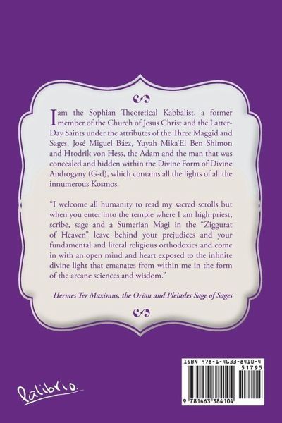 I am the Sophian Theoretical Kabbalist, a former member of the Church of Jesus Christ and the Latter-Day Saints under the attributes of the Three Maggid and Sages, José Miguel Báez, Yuyah Mika'El Ben Shimon and Hrodrik von Hess, the Adam and the man that was concealed and hidden within the Divine Form of Divine Androgyny (G-d), which contains all the lights of all the innumerous Kosmos. "I welcome all humanity to read my sacred scrolls but when you enter into the temple where I am high priest, scribe, sage and a Sumerian Magi in the "Ziggurat of Heaven" leave behind your prejudices and your fundamental and literal religious orthodoxies and come in with an open mind and heart exposed to the infinite divine light that emanates from within me in the form of the arcane sciences and wisdom." Hermes Ter Maximus, the Orion and Pleiades Sage of Sages