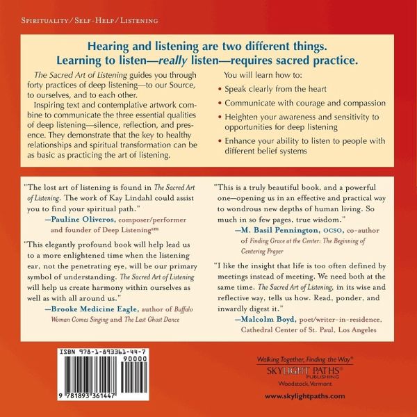 Inspiring text and contemplative artwork combine to communicate the three essential qualities of deep listeningâ silence, reflection and presence. They demonstrate that the key spiritual transformation can be as basic as practicing the art of listening.