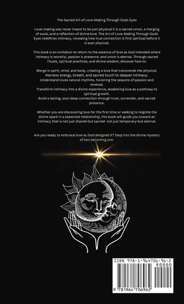 Love-making was never meant to be just physical it is a sacred union, a merging of souls, and a reflection of divine love. The Art of Love-Making Through Gods Eyes redefines intimacy, revealing how true connection is first spiritual before it is ever physical. This book is an invitation to return to the essence of love as God intended where intimacy is worship, passion is presence, and union is eternal. Through sacred rituals, spiritual practices, and divine wisdom, discover how to: Merge in spirit, mind, and body, creating a love that transcends the physical. Harness energy, breath, and sacred touch to deepen intimacy. Understand loves natural rhythms, honoring the seasons of passion and renewal. Transform intimacy into a divine experience, awakening love as a pathway to spiritual growth. Build a lasting, soul-deep connection through trust, surrender, and sacred presence. Whether you are discovering love for the first time or seeking to reignite the divine spark in a seasoned relationship, this book will guide you toward an intimacy that is not just shared-but sacred- not just temporary-but eternal. Are you ready to embrace love as God designed it? Step into the divine mystery of two becoming one.