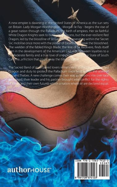 A new empire is dawning in the United States of America as the sun sets on Britain. Lady Morgan Worthington - Morgan le Fay - begins the rise of a great nation through the Palladium, the birth of empires. Her six faithful White Dragon Knights seek to build on its success, but the ever-resilient Red Dragon, led by the bloodline of Sir Galahad and operating within the 'Secret Six', mobilise once more with the power of Excalibur to break the bloodshed. The wielder of the fabled King's Blade, the line of Sir Bedivere, finds itself torn in the development of the American Civil War, between loyalties to a Confederate family and a true love of one persecuted in the State of South Carolina...a friction that could sway the tides of battle. The Sacred Band of male paired lovers remain loyal to the cause of the Red Dragon and duty to protect the Palladium once held within the walls of Ancient Thebes. A new challenge comes their way as tensions rise over race and creed, their leader and his partner brought into conflict for the rights of slaves and their own futures within a nation where all are declared equal.