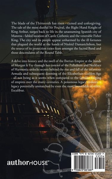 The blade of the Thirteenth has risen - cursed and unforgiving. The tale of the most dutiful Sir Percival, the Right Hand Knight of King Arthur, surges back to life in the unassuming Spanish city of Manresa - fabled location of Castle Corbenic and the venerable Fisher King. The city and its people appear unharmed by the ill fortunes that plagued the world at the hands of Niobid Damasichthon, but the source of its protection raises fears amongst the Sacred Band and those descendants of the Round Table. A delve into history and the swell of the Iberian Empire at the hands of Morgan le Fay through her control of the Palladium and Necklace of Harmonia unlocks secrets behind the rise and fall of the infamous Armada and subsequent dawning of the Elizabethan Golden Age - all not being as it seems when compared to the familiar forging of empires over the many centuries. A poisonous legacy endures, a legacy potentially unmatched by even the most formidable of relics, Excalibur.