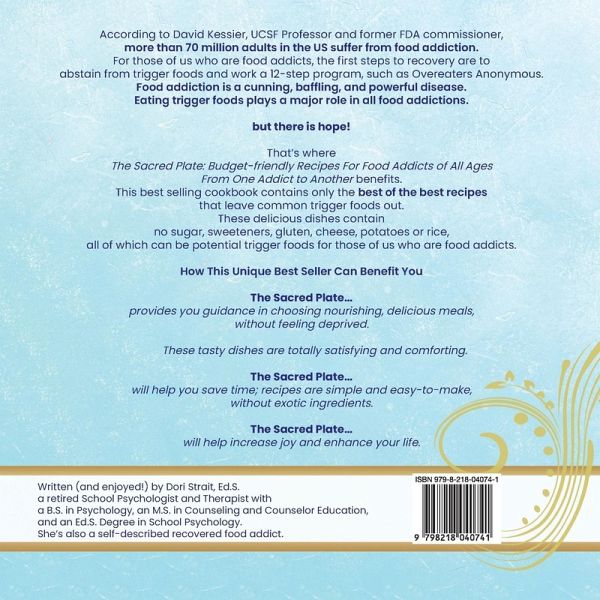 ¿¿¿Food addiction is a cunning, baffling, and powerful illness. Eating trigger foods plays a major role in all food addictions. but there is hope! That's where The Sacred Plate: Budget-friendly Recipes for Food Addicts of All Ages From One Food Addict to Another benefits. This best selling cookbook contains only the best of the best recipes that leave out common trigger foods. These delicious dishes contain no sugar, sweeteners, gluten, cheese, potatoes or rice, all of which can be potential trigger foods for those of us who are food addicts. The Sacred Plate:... will help save time and money; recipes are simple and easy-to-make, without exotic ingredients. This cookbook provides you guidance in choosing nourishing, delicious meals, without your feeling deprived. These tasty dishes are totally satisfying and comforting, and will help increase joy and enhance your life.
