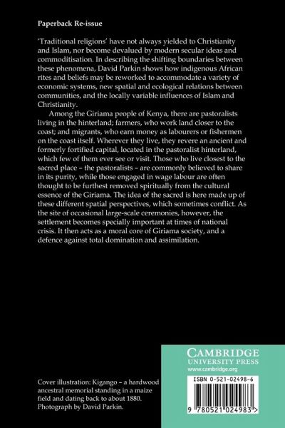 In this innovative study, David Parkin shows how indigenous African rites and beliefs may be reworked to accommodate a variety of economic systems, new spatial and ecological relations between communities, and the locally variable influences of Islam and Christianity. The Giriama people of Kenya include pastoralists living in the hinterland; farmers, who work land closer to the coast; and migrants, who earn money as labourers or fishermen on the coast itself. Wherever they live, they revere an ancient and formerly fortified capital, located in the pastoralist hinterland, which few of them ever see or visit. Their different perspectives sometimes conflict, but together provide a shifting idea of the sacred place. As the site of occasional large-scale ceremonies, moreover, the settlement becomes especially important at times of national crisis. It then acts as a moral core of Giriama society, and a symbolic defence against total domination and assimilation.