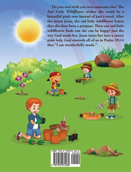 Do you ever wish you were someone else? The Sad Little Wildflower wishes she could be a beautiful pink rose instead of just a weed. After she meets Jesus, the sad little wildflower learns that she does have a purpose. Then our sad little wildflower discovers she can be happy just the way God made her. Jesus turns her into a sunny pink lady. God reminds all of us in Psalm 39:14 that "I am wonderfully made."