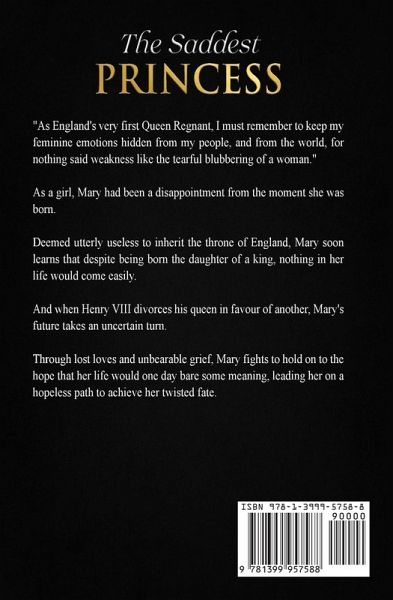 "As England's very first queen regnant, I must remember to keep my feminine emotions hidden from my people, and from the world, for nothing said weakness like the tearful blubbering of a woman." As a girl, Mary had been a disappointment from the moment she was born. Deemed utterly useless to inherit the throne of England, Mary soon learns that despite being born the daughter of a king, nothing in her life would come easily. And when Henry VIII divorces his queen in favour of another, Mary's future takes an uncertain turn. Through lost loves and unbearable grief, Mary fights to hold on to the hope that her life would one day bear some meaning, leading her on a hopeless path to achieve her twisted fate.