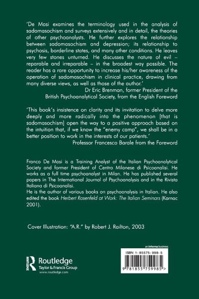 Forewords Introduction A precursor Problems of terminology and definition Sadomasochism and depression Feminine masochism, or the case of the Wolf Man Ascetic masochism The clinical area of perversion Theories of sadomasochistic perversion After the theories Areas of contiguity Infantile trauma and perversion Final notes on the three paradigms Psychoanalytic therapy of the perversions Evil and pleasure: a psychoanalytic view