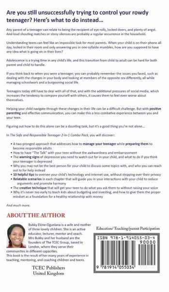 Is a troubled teen challenging your family's serenity? Learn how to establish a positive relationship and restore genuine peace. Can't put up with the perpetual mood swings anymore? Sick of mumbled, one-word answers? Struggling with a defiant rebel who won't listen? Educator, specialist in pedagogy, and experienced counselor coach Bukky Ekine-Ogunlana has spent over twenty-five years helping frustrated parents and tormented teens reclaim their sanity. Now she's here to share her bulletproof strategies for opening up communication and reclaiming household harmony. The Safe and Responsible Teenager is the perfect insight into the turmoil of an adolescent's developing mind. With key techniques developed over decades of successful application, Ekine-Ogunlana provides a lifeline to any parent tearing their hair out. And by understanding the source of your young adult's mercurial highs and melancholic lows and helping them course-correct, you'll feel confident and reassured about their future prospects.In The Safe and Responsible Teenager, you'll discover:The secret parenting methods that foster emotional and intellectual development How to manage anger and resolves conflicts with a calm voice Ways to catch early signs of anxiety and depression and lead them back to confidence Discipline tactics to avoid going to battle and instead apply a steady hand Help with managing the stressful entry into adulthood, practical examples, and much, much more! The Safe and Responsible Teenager is every parent's dream guide and is the second book in the From Toddlers to Teens series. If you like concrete advice, real-world scenarios, and expert insights, then you'll love Bukky Ekine-Ogunlana's life-changing manual.Buy The Safe and Responsible Teenager to conquer the hormones today!