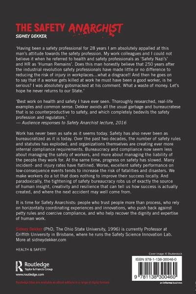 'Best work on health and safety I have ever seen. Thoroughly researched, real-life examples and common sense. Dekker avoids all the usual garbage and bureaucratese that is so counterproductive to safety, and which completely bedevils the safety profession and regulators.' - Audience responses to Safety Anarchist lecture, 2016