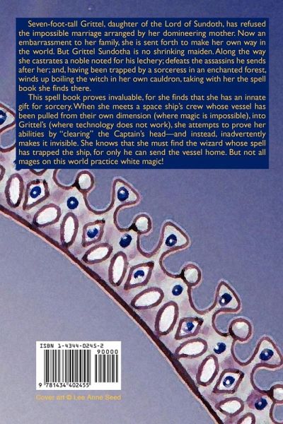 Seven-foot-tall Grittel, daughter of the Lord of Sundoth, has refused the impossible marriage arranged by her domineering mother. Now an embarrassment to her family, she is sent forth to make her own way in the world. But Grittel Sundotha is no shrinking maiden. Along the way she castrates a noble noted for his lechery; defeats the assassins he sends after her; and, having been trapped by a sorceress in an enchanted forest, winds up boiling the witch in her own cauldron, taking with her the spell book she finds there. This proves invaluable, for she finds that she has an innate gift for sorcery. When she meets a space ship's crew whose vessel has been pulled from their own dimension (where magic is impossible), into Grittel's (where technology does not work), she attempts to prove her abilities by "clearing" the Captain's head--and instead, inadvertently makes it invisible. She knows that she must find the wizard whose spell has trapped the ship, for only he can send the vessel home. But not all mages on this world practice white magic!