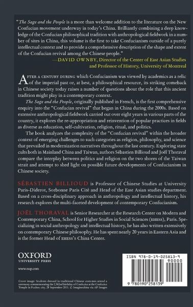 After a century during which Confucianism was viewed by academics as a relic of the imperial past or, at best, a philosophical resource, its striking comeback in Chinese society today raises a number of questions about the role that this ancient tradition--re-appropriated, reinvented, and sometimes instrumentalized--might play in a contemporary context. The Sage and the People, originally published in French, is the first comprehensive enquiry into the "Confucian revival" that began in China during the 2000s. It explores its various dimensions in fields as diverse as education, self-cultivation, religion, ritual, and politics. Resulting from a research project that the two authors launched together in 2004, the book is based on the extensive anthropological fieldwork they carried out in various parts of China over the next eight years. Sébastien Billioud and Joël Thoraval suspected, despite the prevailing academic consensus, that fragments of the Confucian tradition would sooner or later be re-appropriated within Chinese society and they decided to their hypothesis. The reality greatly exceeded their initial expectations, as the later years of their project saw the rapid development of what is now called the "Confucian revival" or "Confucian renaissance". Using a cross-disciplinary approach that links the fields of sociology, anthropology, and history, this book unveils the complexity of the "Confucian Revival" and the relations between the different actors involved, in addition to shedding light on likely future developments.