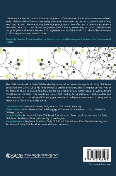 In light of such statistics, early childhood services for young children have expanded around the world. The SAGE Handbook of Early Childhood Policy draws critical attention to policy in Early Childhood Education and Care (ECEC) its relationship to service provision and its impact on the lives of children and families. The perspectives of leading academics and researchers from Europe, North America, South America, Africa, Australasia and Asia have been arranged around five key themes: