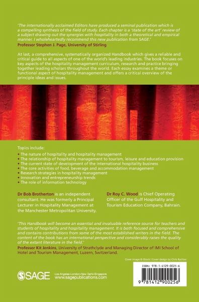 At last, a comprehensive, systematically organized Handbook which gives a reliable and critical guide to all aspects of one of the world's leading industries: the hospitality industry. The book focuses on key aspects of the hospitality management curriculum, research and practice bringing together leading scholars throughout the world. Each essay examines a theme or functional aspect of hospitality management and offers a critical overview of the principle ideas and issues that have contributed, and continue to contribute, within it. Topics include: ¿ The nature of hospitality and hospitality management ¿ The relationship of hospitality management to tourism, leisure and education provision ¿ The current state of development of the international hospitality business ¿ The core activities of food, beverage and accommodation management ¿ Research strategies in hospitality management ¿ Innovation and entrepreneurship trends ¿ The role of information technology The SAGE Handbook of Hospitality Management constitutes a single, comprehensive source of reference which will satisfy the information needs of both specialists in the field and non-specialists who require a contemporary introduction to the hospitality industry and its analysis. Bob Brotherton formerly taught students of Hospitality and Tourism at Manchester Metropolitan University. He has also taught Research Methods to Hospitality and Tourism students at a number of international institutions as a visiting lecturer; Roy C. Wood is based in the Oberoi Centre of Learning and Development, India