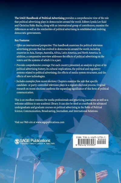 The SAGE Handbook of Political Advertising provides a comprehensive view of the role political advertising plays in democracies around the world. Editors Lynda Lee Kaid and Christina Holtz-Bacha, along with an international group of contributors, examine the differences as well as the similarities of political advertising in established and evolving democratic governments.
