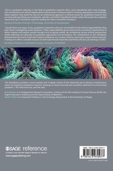 This is a landmark collection in the field of qualitative research ethics, and a Handbook with a key message. The contributions are full of insights about ethical issues in diverse research contexts, populations and methods. Taken together they build the case for an institutional approach to ethical review for qualitative research that can deal with specificity and complexity. Iphofen and Tolich s Handbook will be richly informative for academic researchers but it should be required reading for ethics committee members.