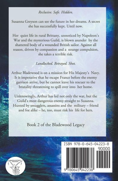 Romance and psychic danger in brass buttons and petticoats Sometimes danger and adventure come knocking, no matter how well you've hidden yourself. Deep in rural Regency Brittany, Lady Susanna Greyson has hidden her strange abilities from both her neighbours and The Guild, an arcane secret society she knew was looking for her. She's been successful, until she finds a wounded British sailor. Against all reason - driven by compassion and a strange compulsion - she takes a terrible risk and helps the enemy. The British Navy may rule the frigid English Channel, but Lieutenant Arthur Bladewood finds himself far from home. Landlocked, betrayed and shot. Unknowingly, Arthur has tangled them both in the Guild's secret business and led their most dangerous enemy straight to Susanna. Hunted by smugglers, assassins and the French army - friend and foe alike - he, too, must now risk his life for hers.