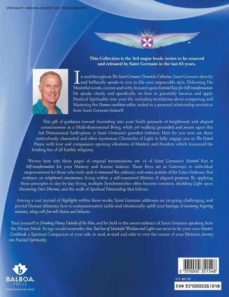 ~ Synopsis ~ This Divinely sourced Ascended Masters Guidebook presents a one-of-a-kind, original collection of Spiritual Wisdom, best described as "A Journey into Practical Spirituality", … and is the 3rd major book/series written and released by Ascended Master Saint Germain in the last 65 years. Here you have a complete, fully channeled, colour illustrated Volume of Ascended Master Saint Germain’s latest transmissions from Above (2008-2014). His guiding voice on Mastering Keys for Self-transformation has been directly received from the Ascended Realm of Spirit and then written in modern day,…mehr