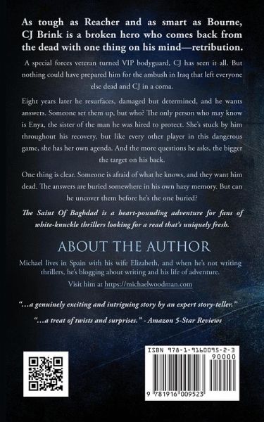As tough as Reacher and as smart as Bourne, CJ Brink is a broken hero who comes back from the dead with one thing on his mind—retribution. A special forces veteran turned VIP bodyguard, CJ has seen it all. But nothing could have prepared him for the ambush in Iraq that left everyone else dead and CJ in a coma. Eight years later he resurfaces, damaged but determined, and he wants answers. Someone set them up, but who? The only person who may know is Enya, the sister of the man he was hired to protect. She’s stuck by him throughout his recovery, but like every other player in this dangerous game, she has her own agenda. And the more questions he asks, the bigger the target on his back. One thing is clear. Someone is afraid of what he knows, and they want him dead. The answers are buried somewhere in his own hazy memory. But can he uncover them before he’s the one buried? The Saint Of Baghdad is a heart-pounding adventure for fans of white-knuckle thrillers looking for a read that’s uniquely fresh.