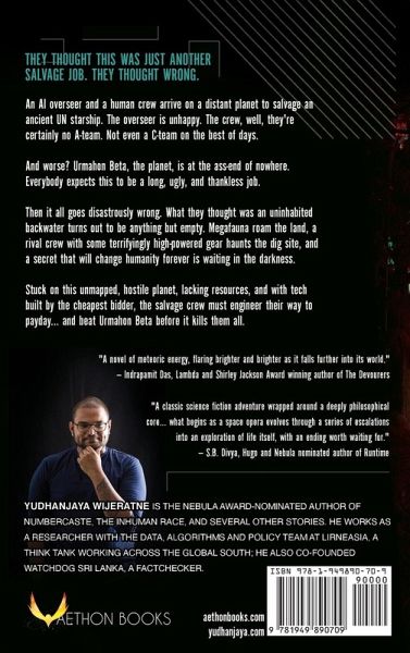 They thought this was just another salvage job. They thought wrong. An AI overseer and a human crew arrive on a distant planet to salvage an ancient UN starship. The overseer is unhappy. The crew, well, they're certainly no A-team. Not even a C-team on the best of days. And worse? Urmahon Beta, the planet, is at the ass-end of nowhere. Everybody expects this to be a long, ugly, and thankless job. Then it all goes disastrously wrong. What they thought was an uninhabited backwater turns out to be anything but empty. Megafauna roam the land, a rival crew with some terrifyingly high-powered gear haunts the dig site, and a secret that will change humanity forever is waiting in the darkness. Stuck on this unmapped, hostile planet, lacking resources, and with tech built by the cheapest bidder, the salvage crew must engineer their way to payday...and beat Urmahon Beta before it kills them all. Experience this space exploration adventure told from the perspective of a snarky artificial intelligence you won't soon forget. It's perfect for fans of The Martian, Red Dwarf, Firefly, and We Are Legion (We Are Bob).