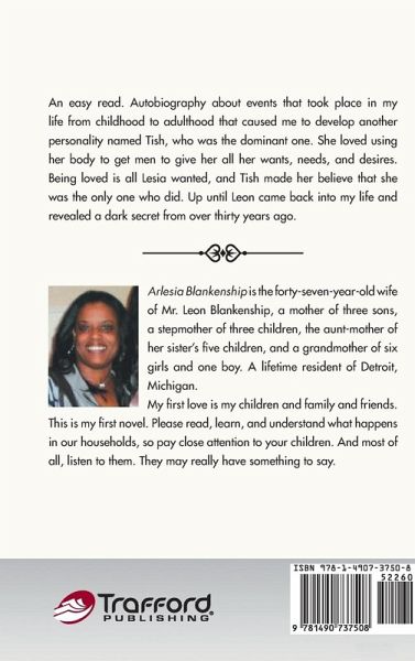 An easy read. Autobiography about events that took place in my life from childhood to adulthood that caused me to develop another personality named Tish, who was the dominant one. She loved using her body to get men to give her all her wants, needs, and desires. Being loved is all Lesia wanted, and Tish made her believe that she was the only one who did. Up until Leon came back into my life and revealed a dark secret from over thirty years ago.