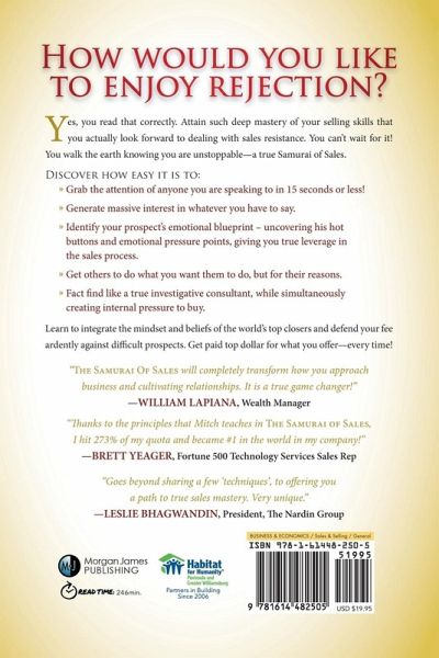 Mitch Harris, aka ¿The Samurai Of Sales,¿ has over 25 years of front line, commission only sales experience that spans three different industries, in one of the most competitive markets in the world ¿ New York City. He has spoken to tens of thousands of sales professionals and been brought in by some of the largest corporations in the world as a consultant, executive coach and keynote speaker.