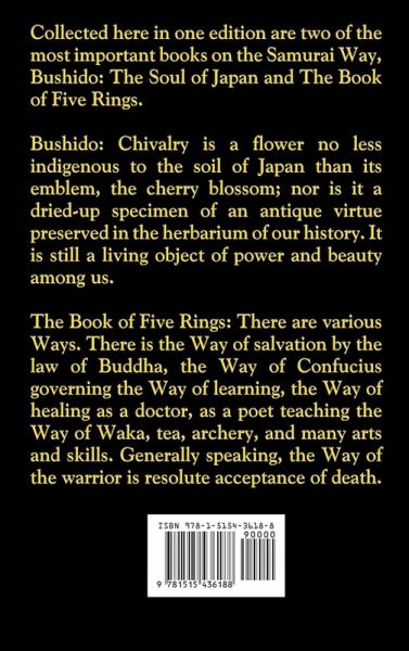 Collected here in one edition are two of the most important books on the Samurai Way, Bushido: The Soul of Japan and The Book of Five Rings. Bushido: Chivalry is a flower no less indigenous to the soil of Japan than its emblem, the cherry blossom; nor is it a dried-up specimen of an antique virtue preserved in the herbarium of our history. It is still a living object of power and beauty among us.