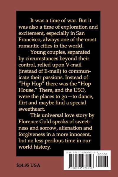 It was a time of war. But it was also a time of exploration and excitement, especially in San Francisco, always one of the most romantic cities in the world. Young couples, separated by circumstances beyond their control, relied upon V-mail (instead of E-mail) to communicate their passions. Instead of "Hip Hop" there was the "Hop House." There, and the USO, were the places to go-to dance, flirt and maybe find a special sweetheart. This universal love story by Florence Gold speaks of sweetness and sorrow, alienation and forgiveness in a more innocent, but no less perilous time in our world history.