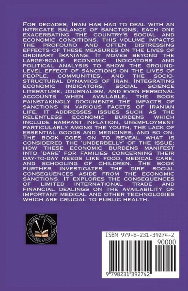 For decades, Iran has had to deal with an intricate balance of sanctions, each one exacerbating the country's social and economic conditions. This volume impacts the profound and often distressing effects of these measures on the lives of ordinary Iranians. It moves beyond the large-scale economic indicators and political analysis to show the ground-level effect of sanctions on the lives of people, communities, and the socio-structural dynamics of Iran. Integrating economic indicators, social science literature, journalism, and even personal accounts when available, the book painstakingly documents the impacts of sanctions in various facets of Iranian life. It addresses issues such as the relentless economic burdens which include rampant inflation, unemployment particularly among the youth, the lack of essential goods and medicines, and so on. The book goes on to reveal what is considered the 'underbelly' of the issue; how these economic burdens manifest into 'dare' for families concerning their day-to-day needs like food, medical care, and schooling of children. The book further investigates the dire social consequences aside from the economic sanctions. It explores the consequences of limited international trade and financial dealings on the availability of important medical and other technologies which are crucial to public health. It looks at how the psychological effects of economic insecurity and uncertainty contribute to heightened stress levels, anxiety, and increased social fragmentation. In addition to this, the book investigates the effects of sanctions on cultural exchange, academic collaboration, and Iranians' connection to the world, which fosters a feeling of isolation and constraint. It examines the disproportionate distribution of the burden of sanctions in the narrative. It analyzes how various socioeconomic groups and regions, including minority communities, uniquely experience the impacts, often deepening existing divides. The book focuses on evaluating the intended and unintended impacts of sanctions-and the question of whether they serve their purpose in inciting political change while drawing attention to the egregious human cost inflicted by sanctions. In addition, "The Sanctions on Iran: The Economic and Social Impacts on Everyday Life" intricately details the external and internal dynamics surrounding Iran. It analyzes how the government's policies and coping mechanisms, alongside the indomitable spirit and creativity of the Iranian people, determine their navigation through the challenges sanctions impose. It acknowledges the controversies concerning the driving forces of the sanctions and their geopolitical impact; however, the focus remains-more than anything else-on the realities of Iranians. The overarching goal of this book is to foster an understanding that is both nuanced and empathetic towards the humanitarian aspects of international sanctions. In addition, it aims to make policymakers, scholars and the public aware of the profound social and economic adaptive effects of these international measures on Iranians, while simultaneously capturing the enduring socio-economic hardships faced by them. This is accomplished by accentuating the daily battle, adaptation, and endurance of the Iranian people; ultimately contributing to the ongoing debate concerning the morality and efficiency of international sanctions as a foreign policy instrument.