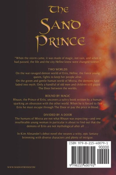 Two worlds. Bound by magic. Divided by a door. On the barren, war-ravaged demon world of Eriis, the fierce queen Hellne fights to keep her people alive and her son Rhuun's heritage a secret. On the green and gentle human world of Mistra, demons have faded into myth. Only a handful of old men and fanatical children still guard The Door between the worlds. Different and shunned by his demon kin, Rhuun finds refuge in a book that tells of a human world of water and wonder. Forced by his mother's enemies to flee Eriis, he finds himself trapped on the other side of The Door in the very place he has read and dreamed about-Mistra. Chained to the deadly whims of a child who guards The Door, Rhuun must balance serving and surviving, even at the risk of exposing his true identity. Riskiest of all is his task of kidnapping an infuriating young woman who is about to find out that the demons of Eriis are much, much more than just an old bedtime story.