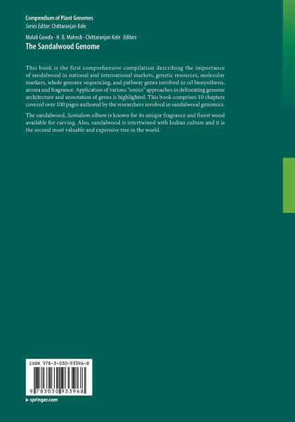 This book is the first comprehensive compilation describing the importance of sandalwood in national and international markets, genetic resources, molecular markers, whole genome sequencing, and pathway genes involved in oil biosynthesis, aroma and fragrance. Application of various "omics" approaches in delineating genome architecture and annotation of genes is highlighted. This book comprises 10 chapters covered over 200 pages authored by the researchers involved in sandalwood genomics.