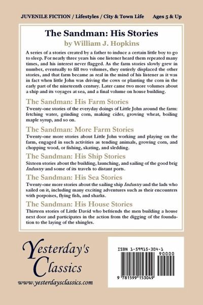 Thirteen stories of Little David who befriends the men building a house next door and participates in the action from the digging of the foundation to the laying of the shingles. Final volume in a series of a stories created by a father to induce a certain little boy to go to sleep. For nearly three years his one listener heard them repeated many times, and his interest never flagged. As the first stories told, the farm stories, slowly grew in number, eventually to fill two volumes, they entirely displaced other stories, and that farm became as real in the mind of his listener as it was in fact when little John was driving the cows or planting the corn in the early part of the nineteenth century. Later came two more volumes about a ship and its voyages at sea, and this final volume on house building. Ideal for ages 5 to 7.