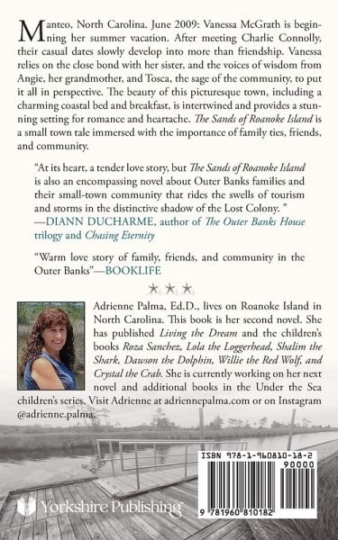 Manteo, North Carolina. June 2009: Vanessa McGrath is beginning her summer vacation. After meeting Charlie Connolly, their casual dates slowly develop into more than friendship. Vanessa relies on the close bond with her sister, and the voices of wisdom from Angie, her grandmother, and Tosca, the sage of the community, to put it all in perspective. The beauty of this picturesque town, including a charming coastal bed and breakfast, is intertwined and provides a stunning setting for romance and heartache. The Sands of Roanoke Island is a small town tale immersed with the importance of family ties, friends, and community.